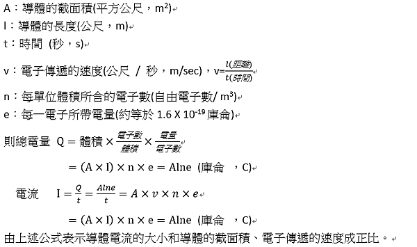 因為在導體中流電的是電子,假設t秒鐘內有N個電子流過導體截面,則